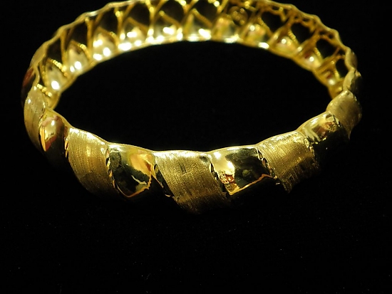 Златна твърда гривна с матирано жълто злато