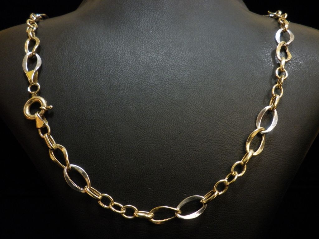 Златен синджир с елементи от бяло и жълто злато,олекотен