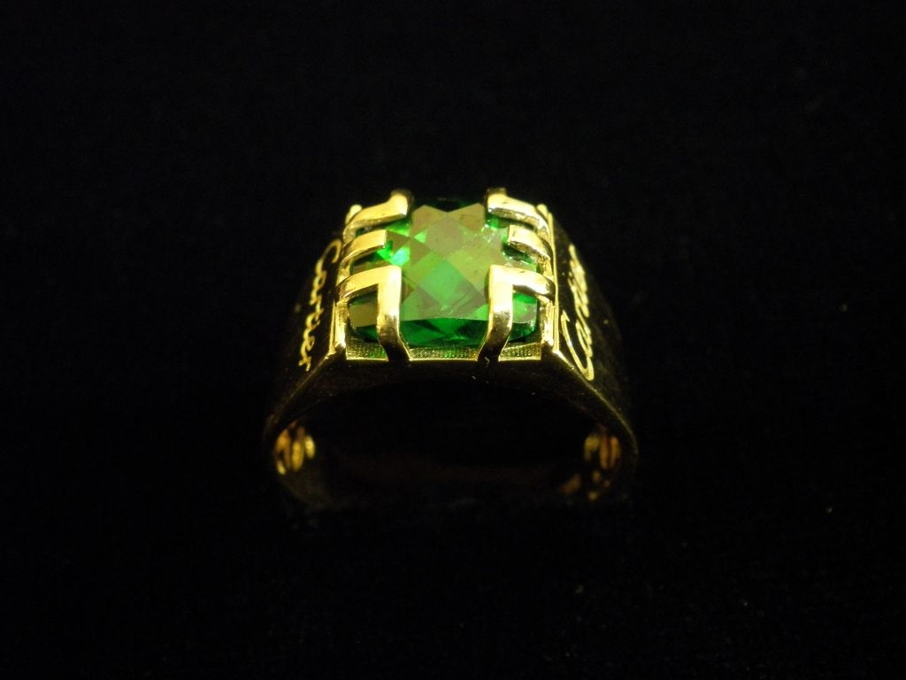 Златен пръстен Картие със зелен камък