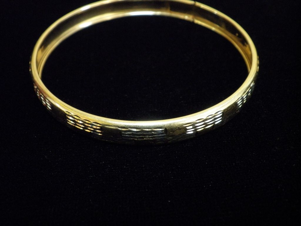 Златна твърда гривна с гравирано бяло и жълто злато