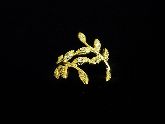 Златен пръстен с орнаменти от жълто злато и бели камъни