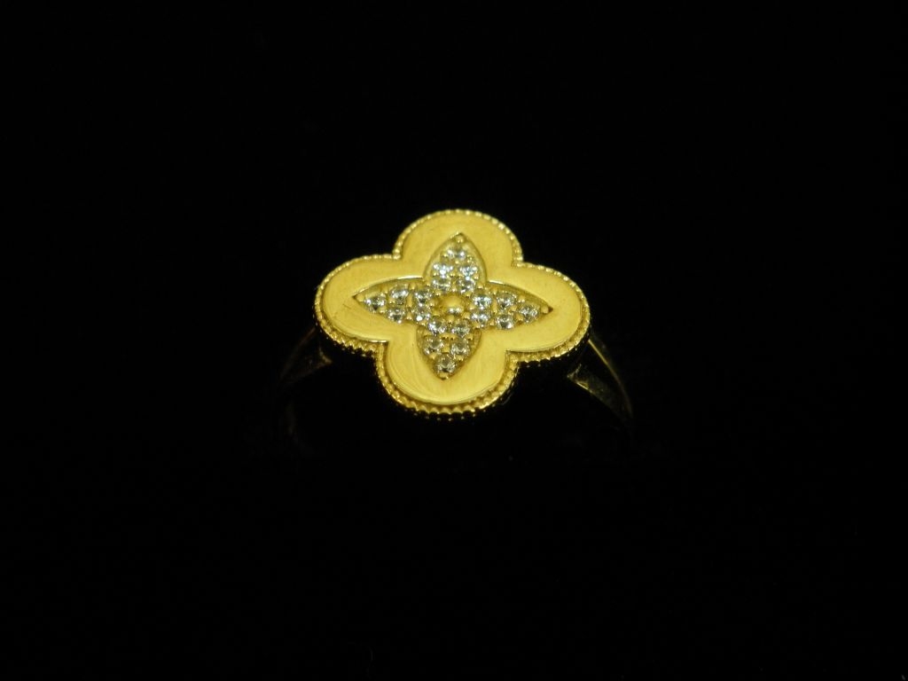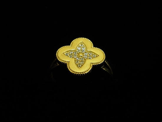 Златен пръстен с орнаменти от жълто злато и бели камъни
