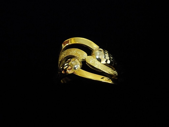 Златен пръстен с гравирано бяло и жълто злато,олекотен