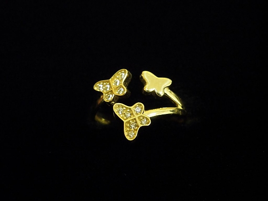 Златен пръстен с орнаменти от жълто злато и бели камъни