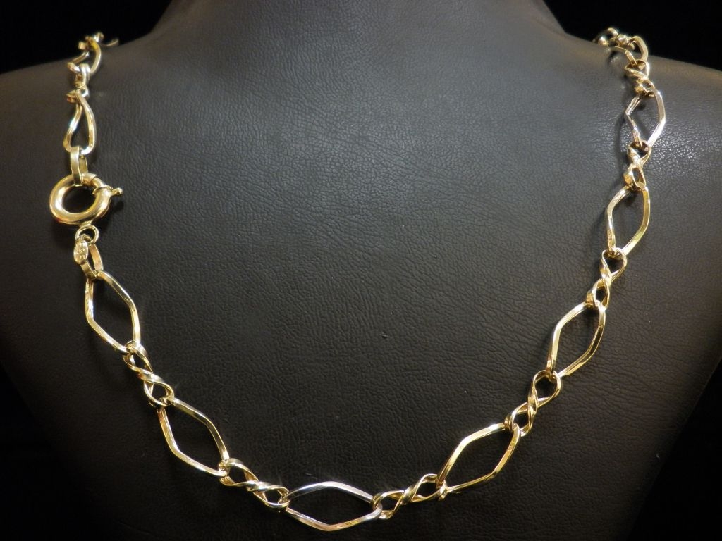 Златен синджир с елементи от бяло и жълто злато,олекотен