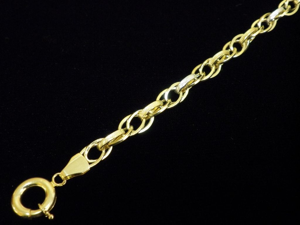 Златна синджирна гривна с гравирани елементи от бяло и жълто злато,олекотена