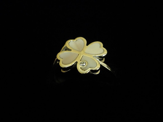 Златен пръстен от бяло злато с бял седеф