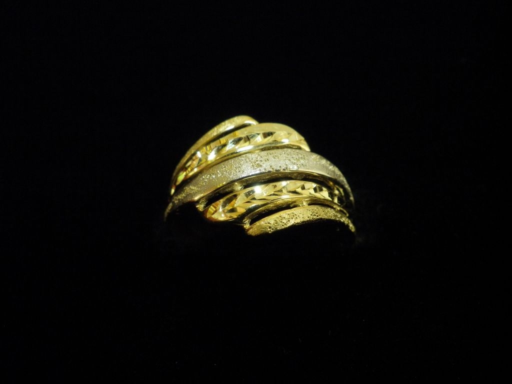 Златен пръстен с гравирани орнаменти от бяло и жълто злато