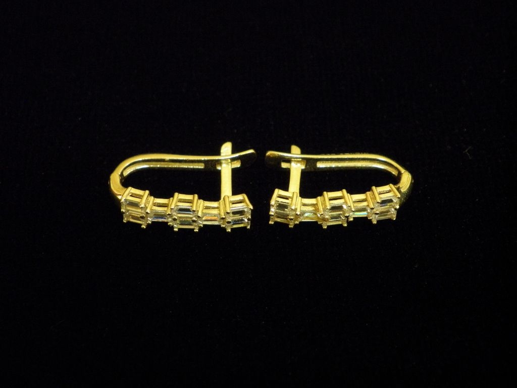 Златни обеци с бели камъни,английско закопчаване