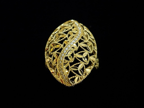 Златен пръстен с орнаменти от жълто злато и бели камъни