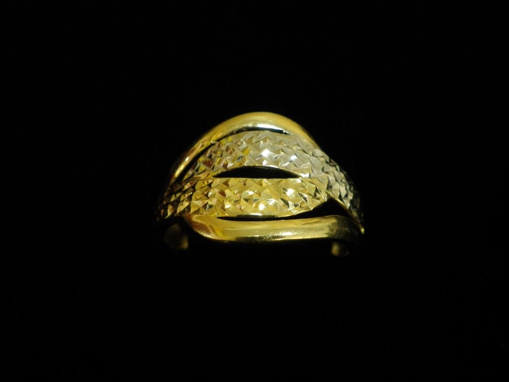 Златен пръстен с гравирано бяло и жълто злато,олекотен