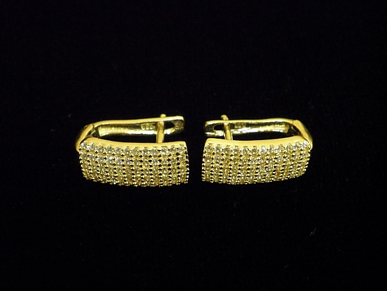 Златни обеци с бели камъни,английско закопчаване