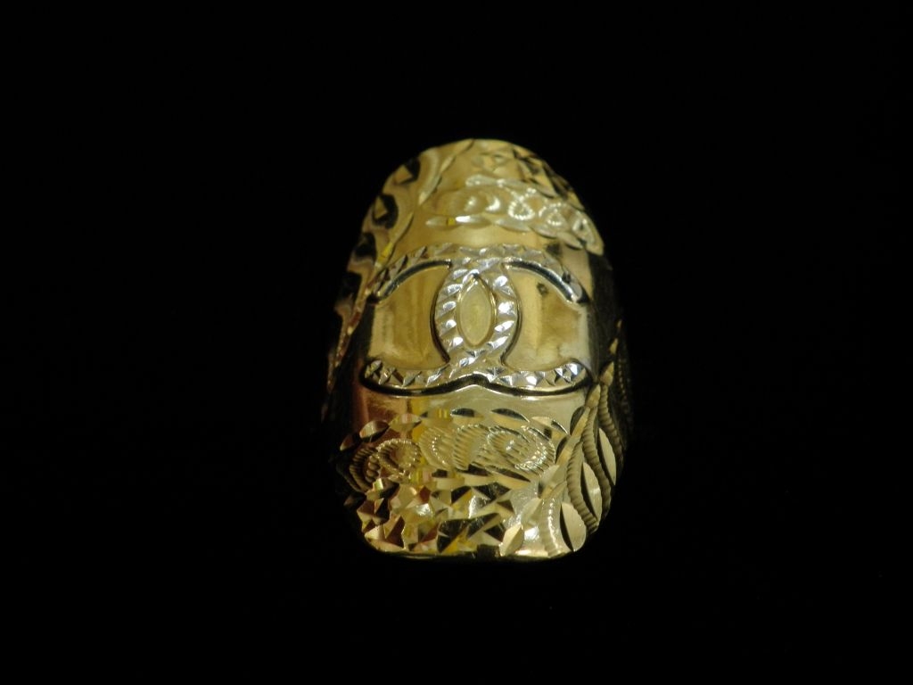 Златен пръстен с гравирано бяло и жълто злато,олекотен
