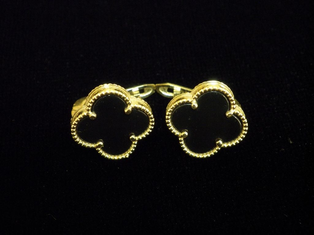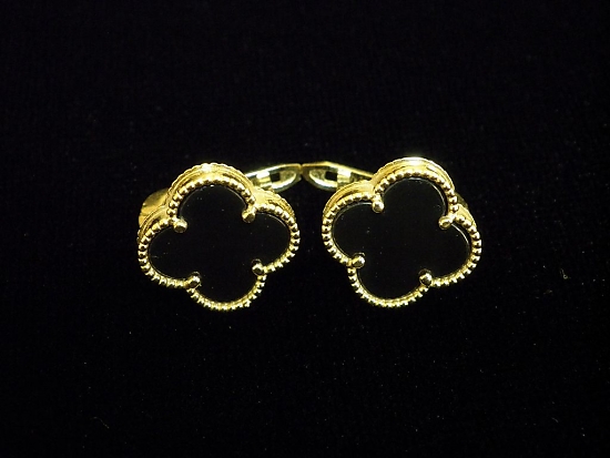 Златни обеци със черен седеф,английско закопчаване