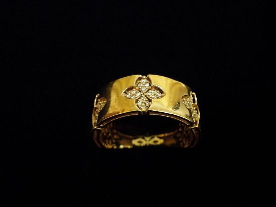 Златен пръстен от розово злато и бели камъни