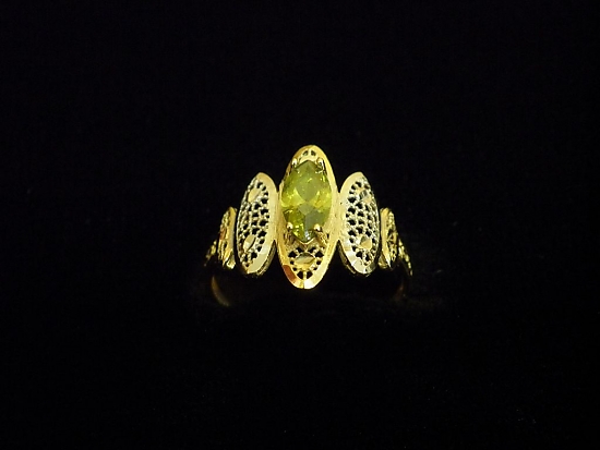 Златен пръстен с орнаменти от жълто злато и зелен камък,олекотен