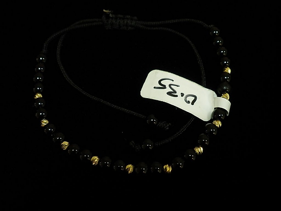 Златна гривна с черен конец и малки черни мъниста