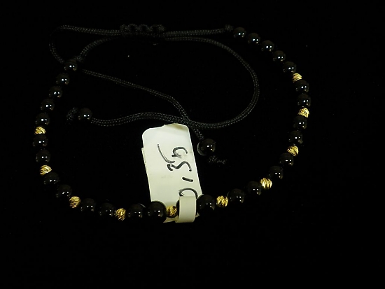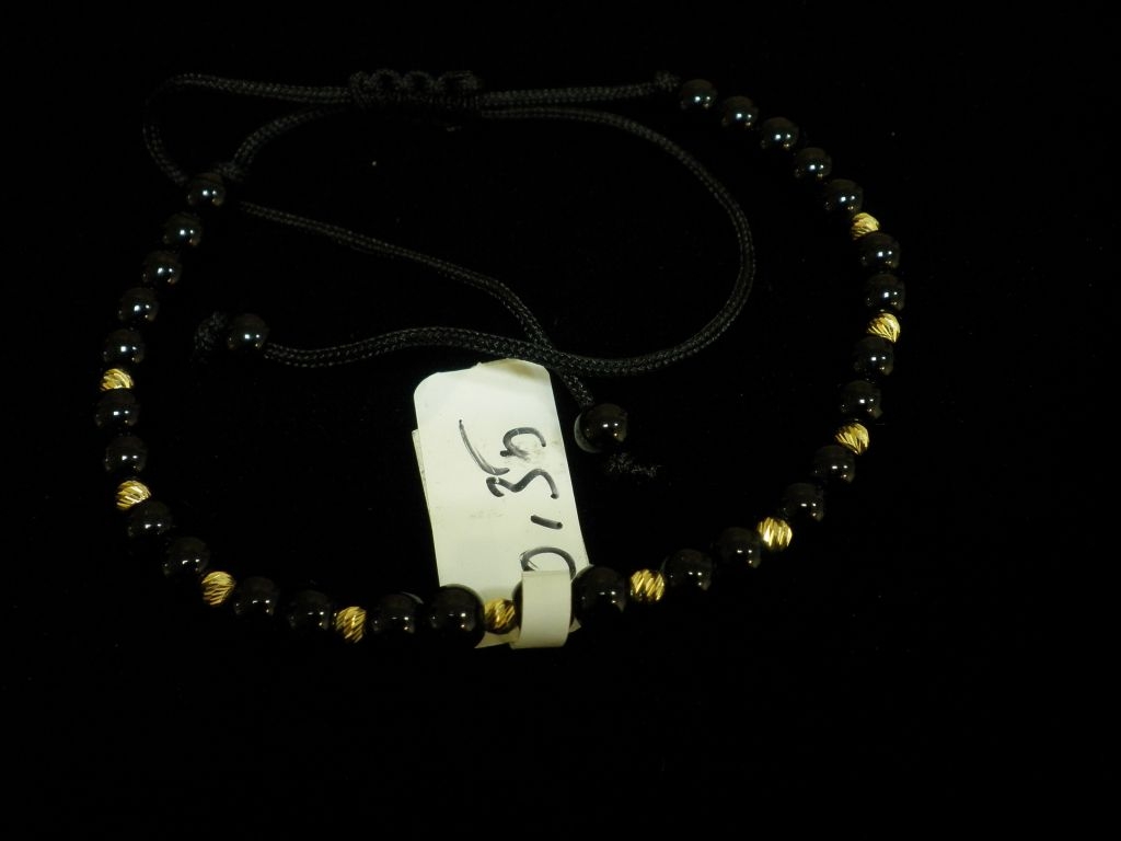 Златна гривна с черен конец и малки черни мъниста