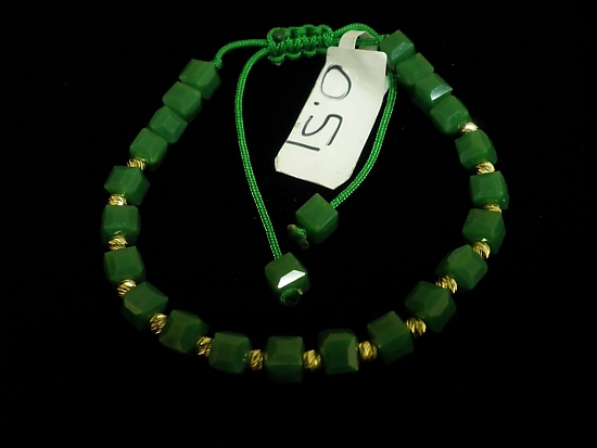 Златна гривна със зелен конец и зелени квадратни мъниста