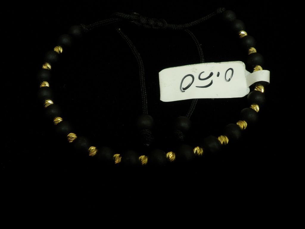 Златна гривна с черен конец и малки черни матирани мъниста