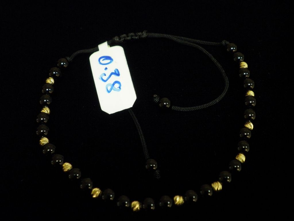 Златна гривна с черен конец и малки черни мъниста