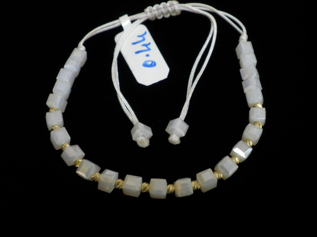 Златна гривна с бял конец и бели квадратни мъниста