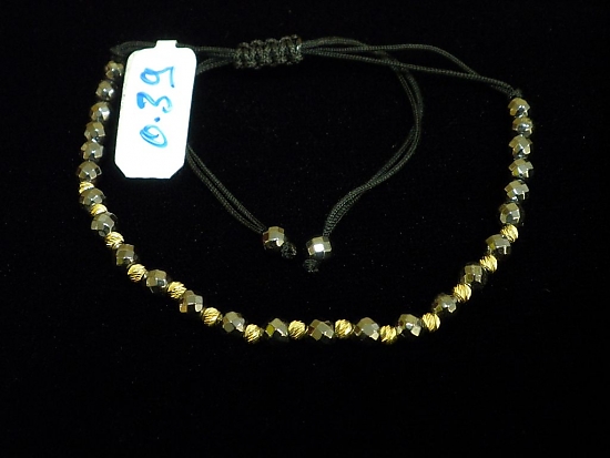 Златна гривна с черен конец и фигури сив металик