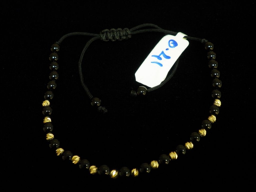 Златна гривна с черен конец и малки черни мъниста