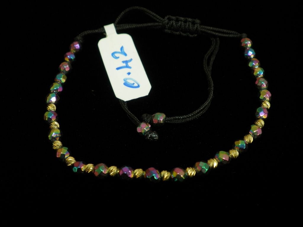 Златна гривна с черен конец и ефектни релефни мъниста