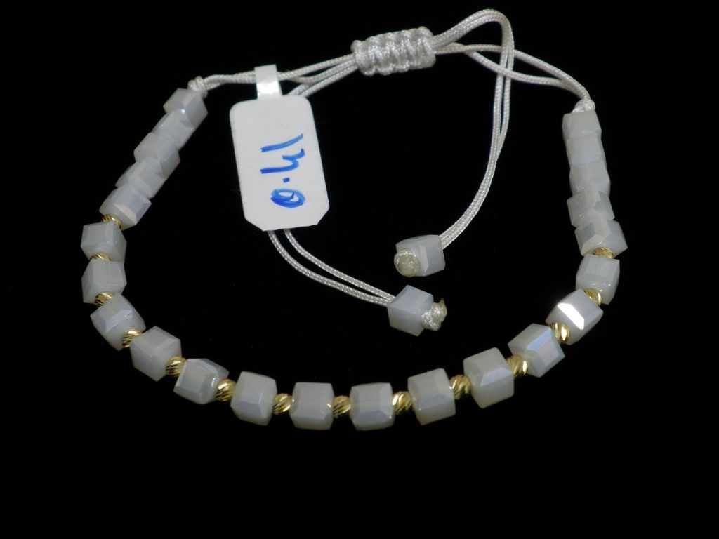 Златна гривна с бял конец и бели квадратни мъниста