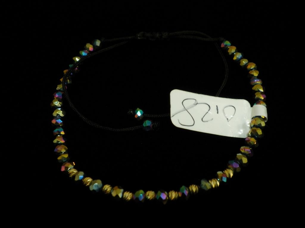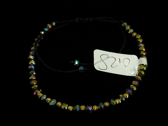 Златна гривна с черен конец и ефектни релефни мъниста