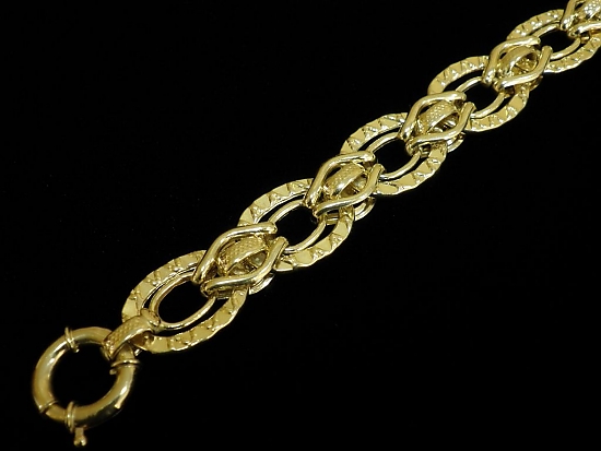 Златна синджирна гривна с гравирани елементи от жълто злато,олекотена