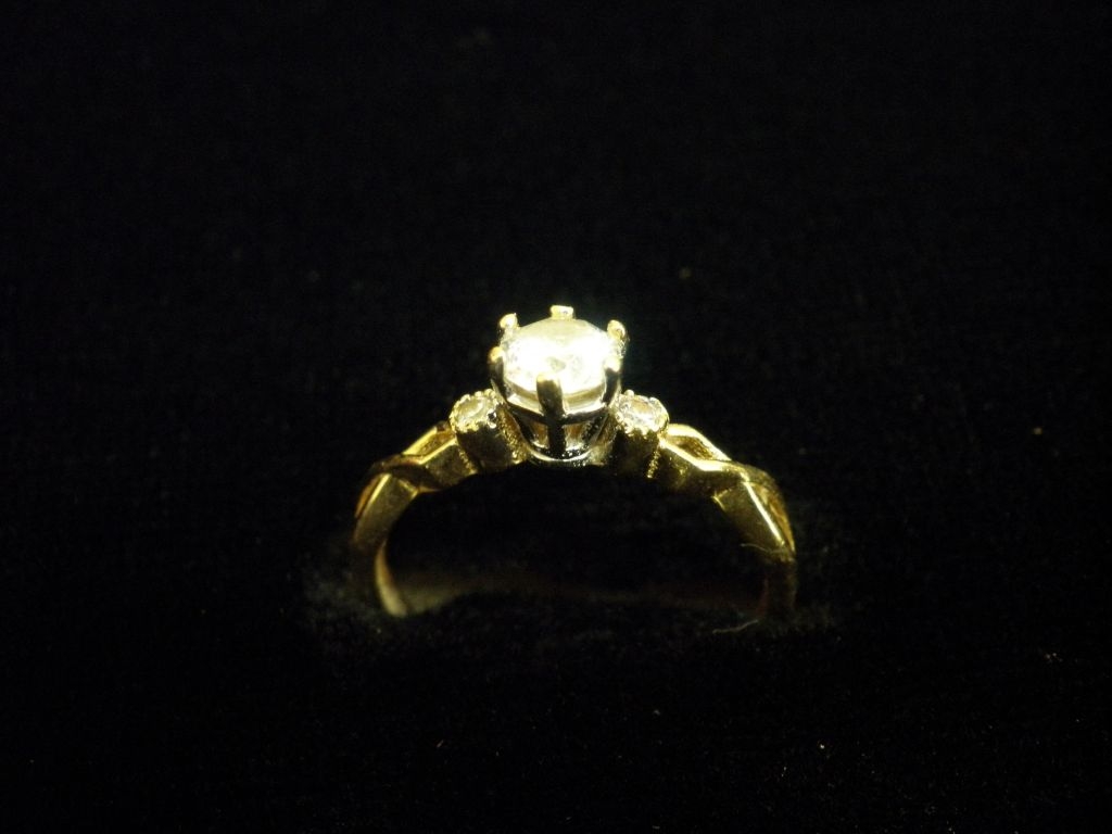 Златен пръстен годежен с бели камъни