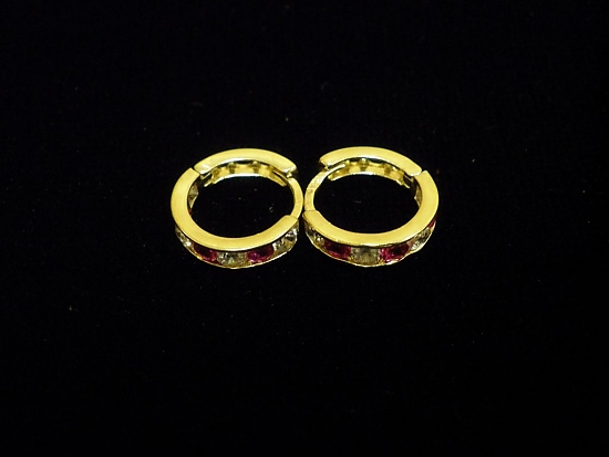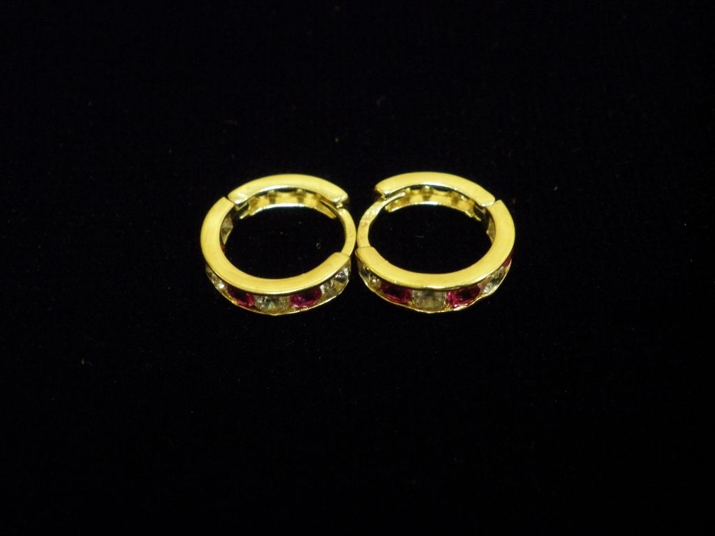 Златни детски обеци с бели и червени камъни