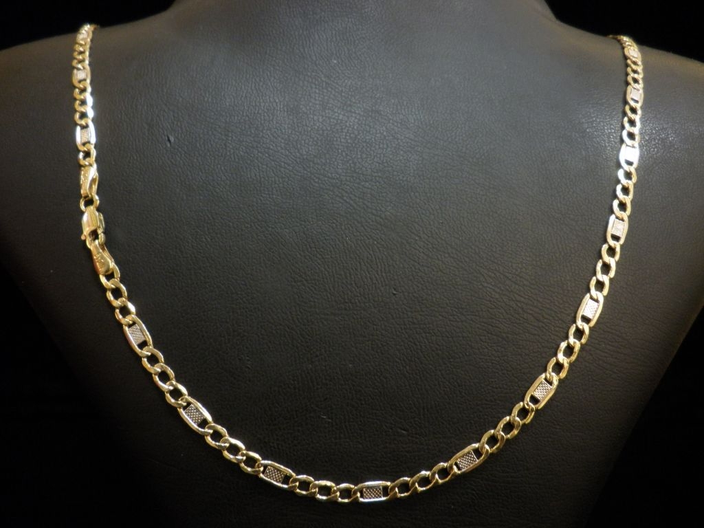 Златен синджир с гравирани елементи от бяло и жълто злато,олекотен