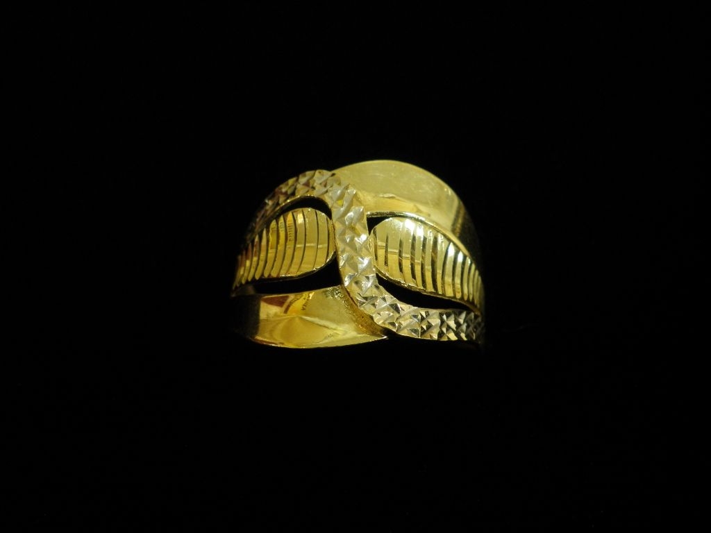 Златен пръстен с гравирано бяло и жълто злато,олекотен