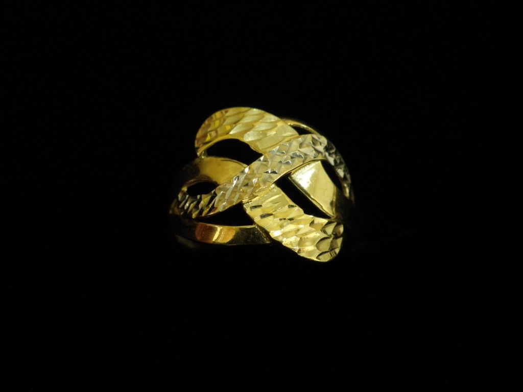 Златен пръстен с гравирано бяло и жълто злато,олекотен