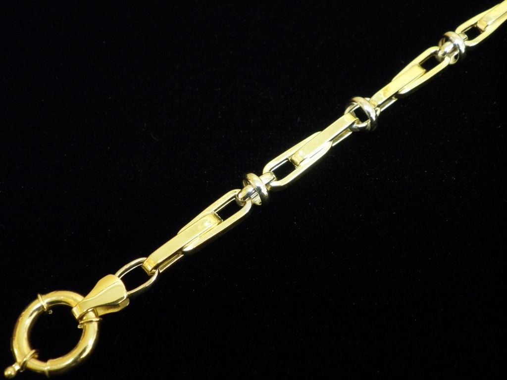 Златна синджирна гривна с елементи от бяло и жълто злато,олекотена