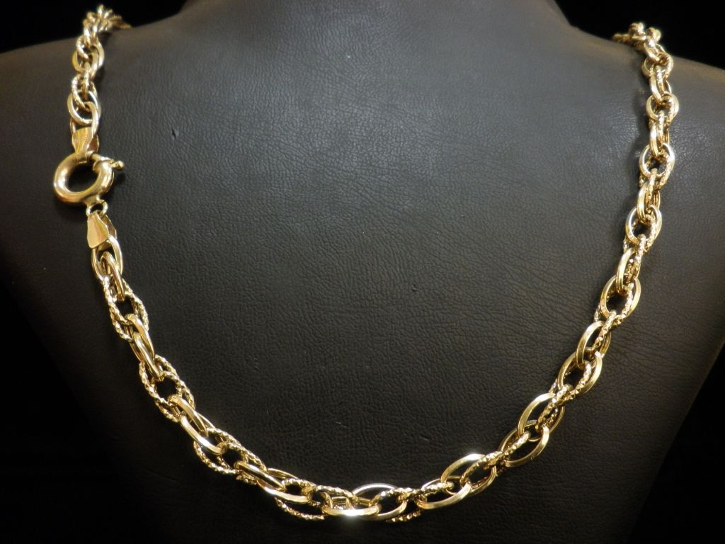 Златен синджир с гравирани елементи от жълто злато,олекотен