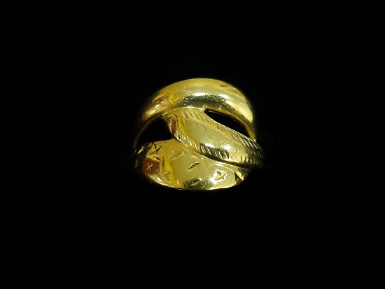 Златен пръстен с гравирано жълто злато,олекотен