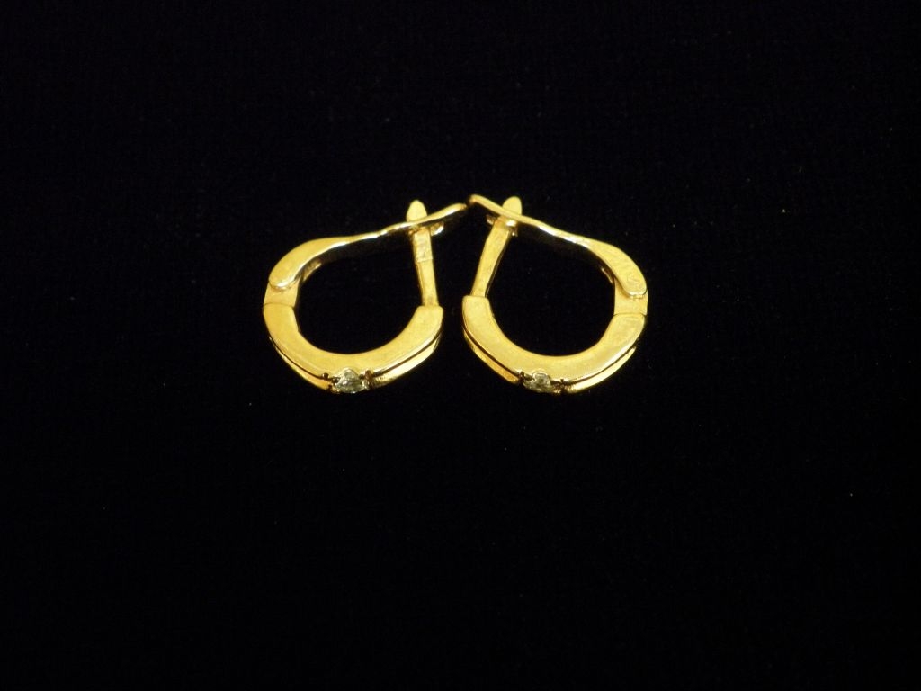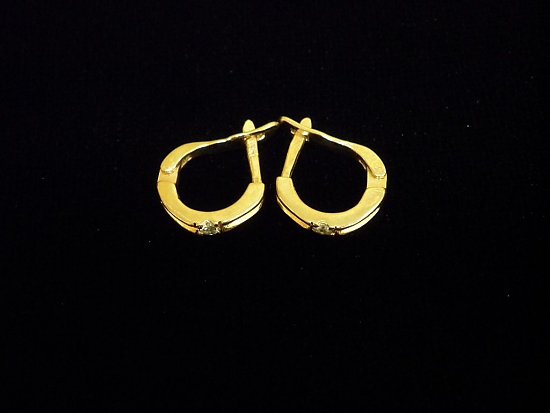 Златни обеци с бели камъни,английско закопчаване