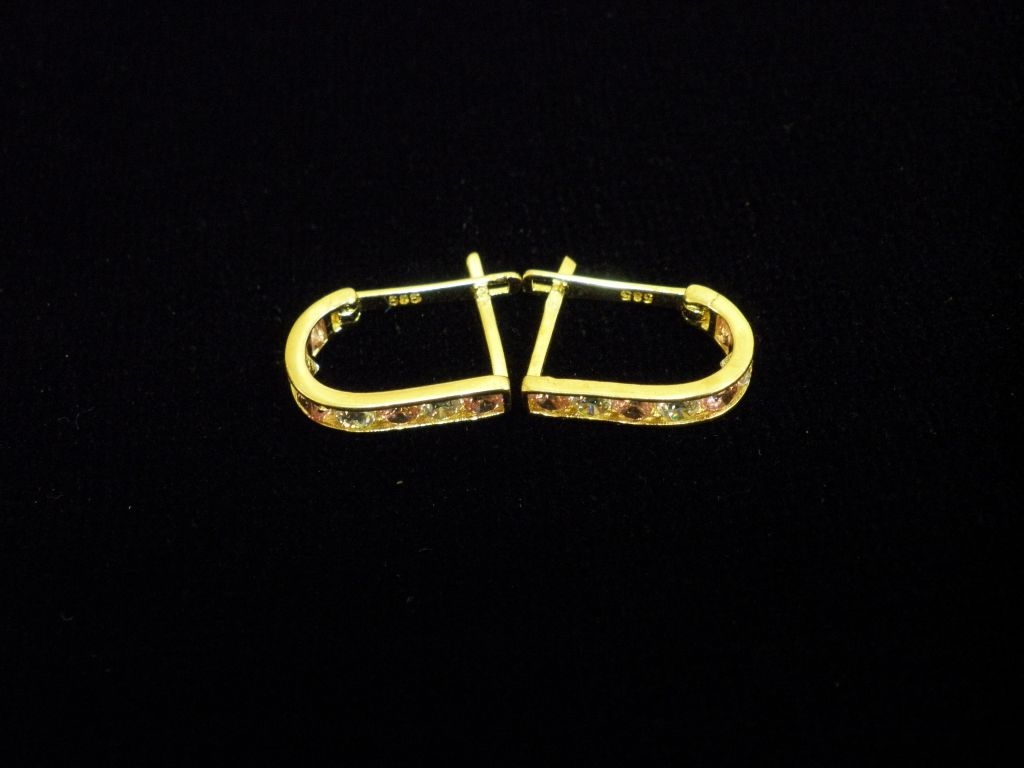 Златни детски обеци с бели и розови камъни,английско закопчаване