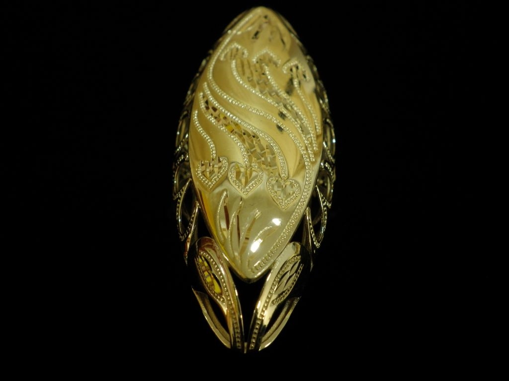 Златен пръстен с орнаменти от жълто злато,олекотен