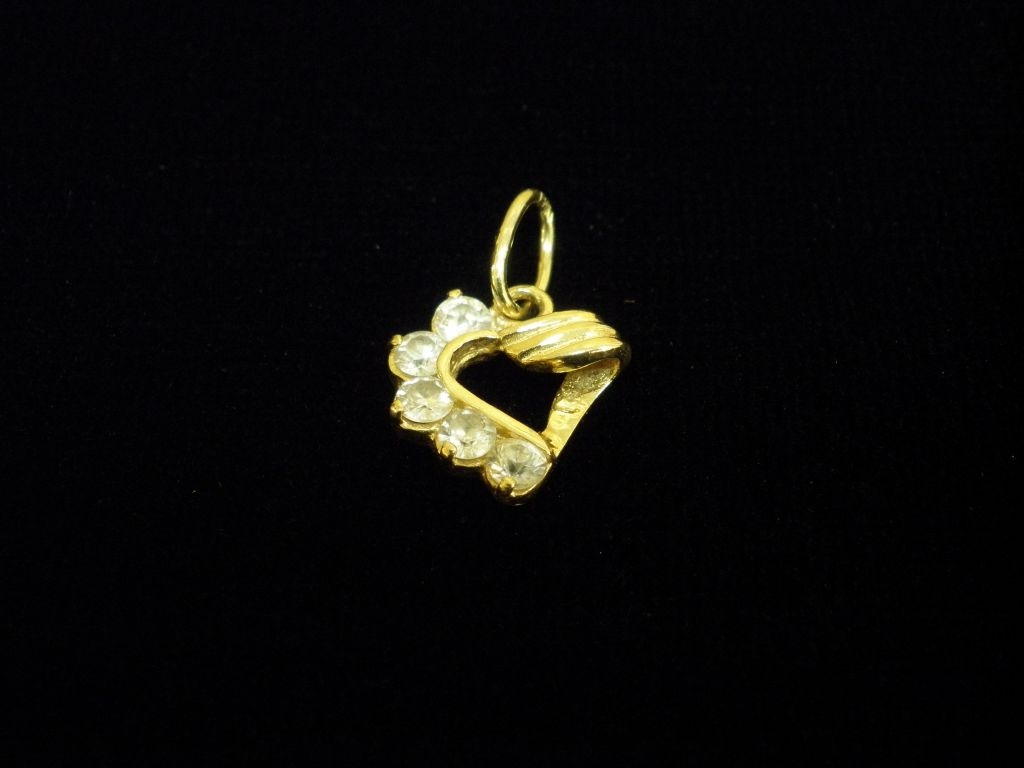 Златен медальон сърце с бели камъни