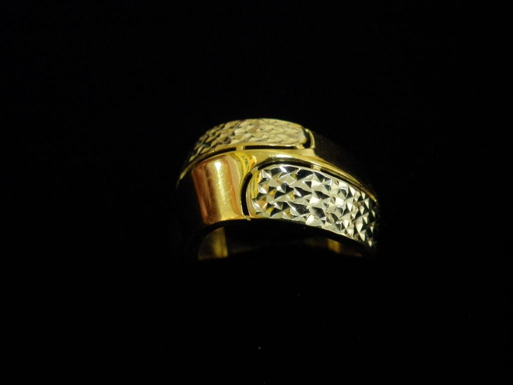 Златен пръстен с гравирано бяло и жълто злато,олекотен