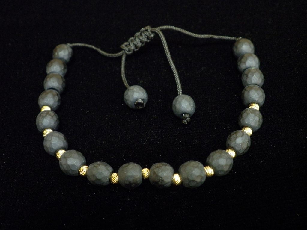 Златна гривна с черен конец и големи черни матирани мъниста