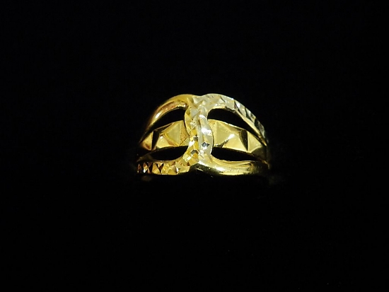 Златен пръстен с гравирано бяло и жълто злато,олекотен