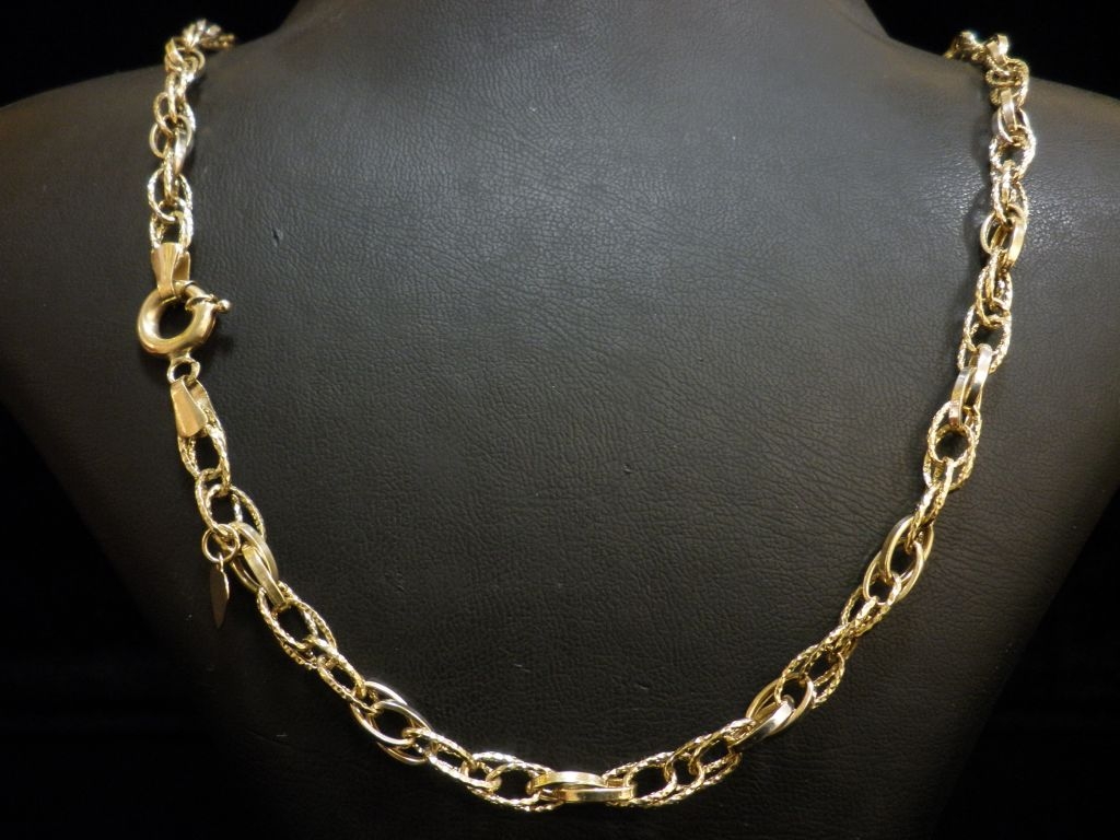 Златен синджир с гравирани елементи от бяло и жълто злато,олекотен