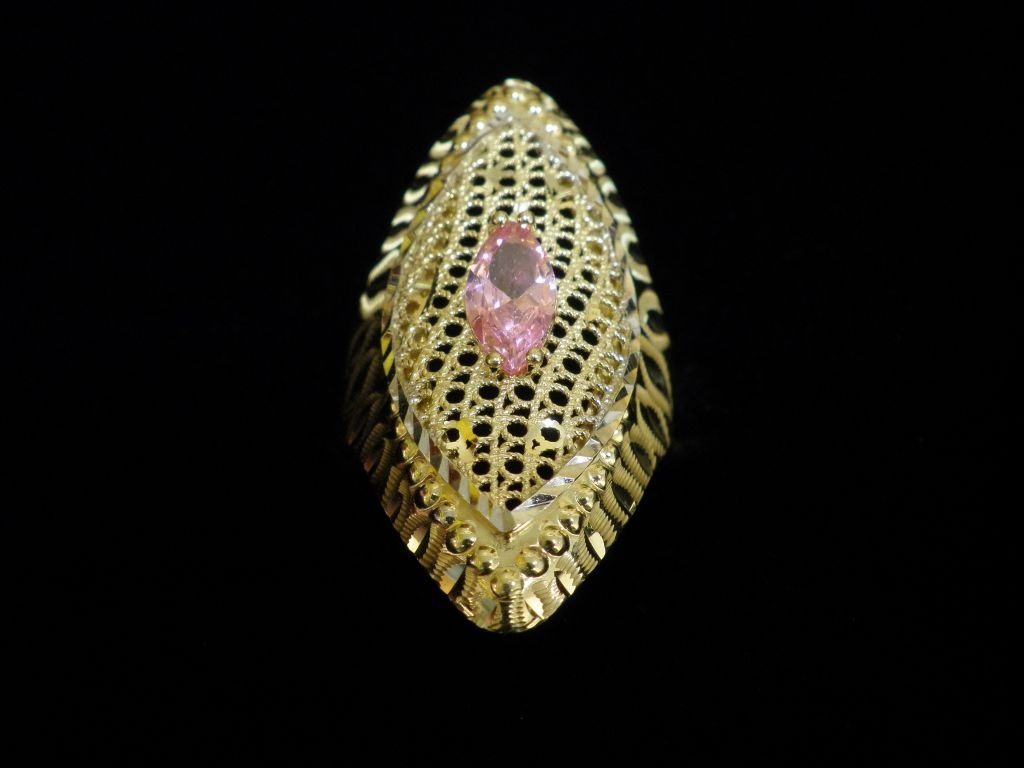 Златен пръстен с орнаменти от жълто злато и розов камък