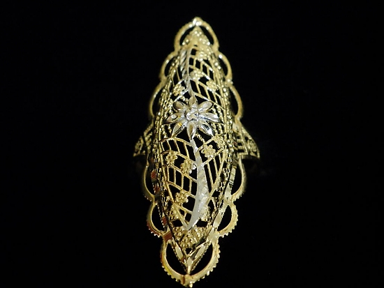 Златен пръстен с орнаменти от бяло и жълто злато,олекотен